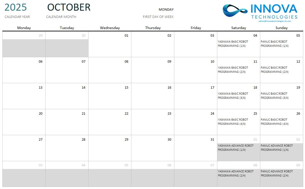 ROBOTICS ONLINE TRAINING DATES: